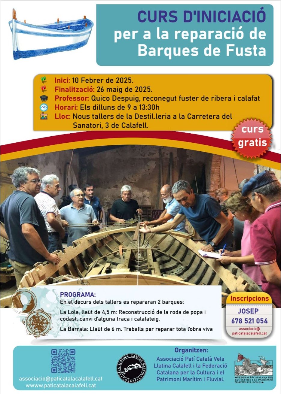 El 10 de febrer de 2025 iniciem el CURS D'INICIACIÓ per a la reparació de barques de fusta impartit per en Quico Despuig en els nous tallers de la Destil·leria.