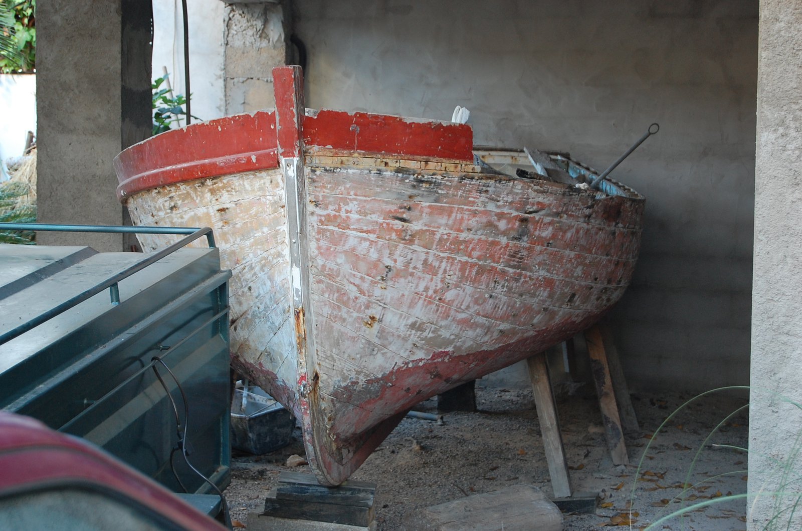 El passat mes de juliol, quan en Francesc Figuerola passejava per Sant Antoni de Portmany, a Eivissa, va descobrir en un pati interior d’unes cases una embarcació d’uns 6 metres d’eslora que estava en reparació.