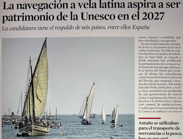 Durant el 30è Fòrum de l'Associació de Museus Marítims de la Mediterrània celebrat el 2025 a L'Escala, la coordinadora de la candidatura europea per a declarar la navegació a vela llatina com a patrimoni immaterial de la Unesco, Tamara Nikolic, ha informat de l'estat de la tramitació de l'expedient.